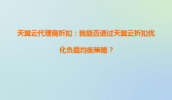 2025-10-05天翼云代理商折扣:如何通過(guò)天翼云折扣優(yōu)化負(fù)載均衡策略? 引言 在當(dāng)今數(shù)字化時(shí)代,云計(jì)算已成為企業(yè)IT基礎(chǔ)設(shè)施的核心組成部分。負(fù)載均衡作為云計(jì)算中的關(guān)鍵技...