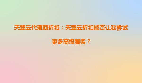 2025-10-05天翼云代理商折扣:天翼云折扣能否讓我嘗試更多高級(jí)服務(wù)? 引言 在數(shù)字化轉(zhuǎn)型的浪潮中,云計(jì)算已成為企業(yè)提升效率、降低成本的核心工具。天翼云作為中國(guó)電信旗...