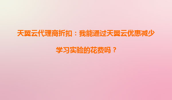 2025-09-29天翼云代理商折扣:我能通過天翼云優(yōu)惠減少學(xué)習(xí)實(shí)驗(yàn)的花費(fèi)嗎? 在當(dāng)今數(shù)字化時(shí)代,云計(jì)算已成為學(xué)習(xí)、實(shí)驗(yàn)和科研的重要工具。無論是學(xué)生、教師還是研究人員,都需要高效、穩(wěn)定且經(jīng)濟(jì)的云服務(wù)來支持他們的學(xué)習(xí)和...