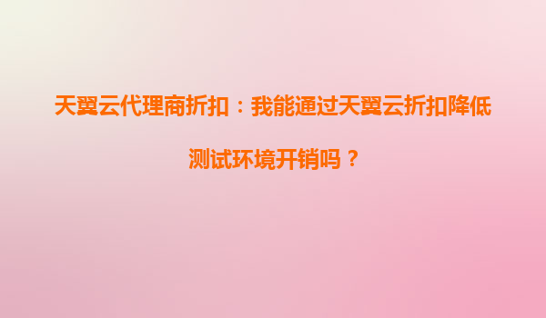 2025-09-29天翼云代理商折扣:我能通過天翼云折扣降低測試環(huán)境開銷嗎? 引言 在數(shù)字化轉(zhuǎn)型的浪潮中,云計(jì)算已成為企業(yè)降本增效的核心工具。然而,測試環(huán)境的搭建與維護(hù)往往帶來高昂的成本壓力,尤...