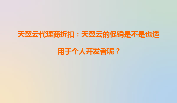 2025-09-26天翼云代理商折扣:天翼云的促銷(xiāo)是否適用于個(gè)人開(kāi)發(fā)者? 一、天翼云促銷(xiāo)活動(dòng)的覆蓋范圍 天翼云作為中國(guó)電信旗下的云計(jì)算服務(wù)品牌,近年來(lái)通過(guò)代理商體系推出了...