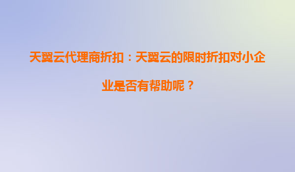 2025-09-24天翼云代理商折扣:天翼云的限時(shí)折扣對(duì)小企業(yè)是否有幫助? 在當(dāng)今數(shù)字化轉(zhuǎn)型的浪潮中,云計(jì)算已成為企業(yè)提升效率、降低成本的重要工具。對(duì)于中小企業(yè)而言,資源的有限性使得選擇合適的云服務(wù)提供商至...