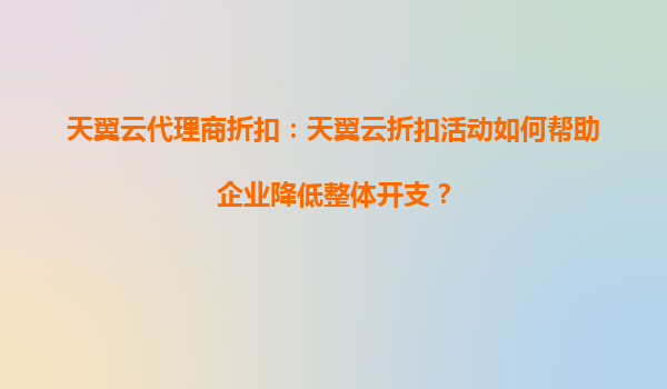 4008-020-360 天翼云代理商折扣:如何通過天翼云折扣活動幫助企業(yè)降低整體開支 引言 在數(shù)字化經(jīng)濟(jì)快速發(fā)展的今天,云計算已經(jīng)成為企業(yè)IT基礎(chǔ)設(shè)施的核心組成部分。企業(yè)如何通過云計算服務(wù)降低運營成本、提升效率...