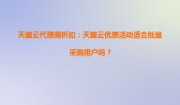 2025-09-19天翼云代理商折扣活動(dòng)解析:適合批量采購用戶嗎? 一、天翼云代理商折扣活動(dòng)概覽 天翼云作為中國電信旗下云計(jì)算品牌,近年通過代理商體系推出多檔折扣活動(dòng),主要面向企業(yè)級(jí)用戶。2023年...