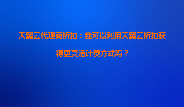 2025-09-19天翼云代理商折扣:天翼云的限時(shí)優(yōu)惠活動(dòng)是否適合短期項(xiàng)目? 引言 在云計(jì)算服務(wù)市場競爭日益激烈的今天,各大云服務(wù)提供商為了吸引客戶,紛紛推出了各種折扣和優(yōu)惠活動(dòng)。天翼云作為中國...