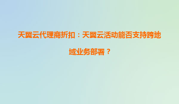 4008-020-360 天翼云代理商折扣:天翼云活動(dòng)能否支持跨地域業(yè)務(wù)部署? 一、天翼云的跨地域業(yè)務(wù)部署能力概述 天翼云作為中國電信旗下的云計(jì)算服務(wù)品牌,憑借其強(qiáng)大的基礎(chǔ)設(shè)施和全球化布局,天然具備跨地域業(yè)務(wù)部署的能力...