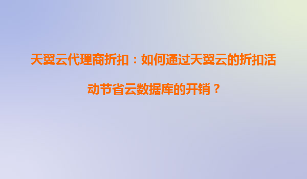 2025-09-18如何通過(guò)天翼云代理商折扣節(jié)省云數(shù)據(jù)庫(kù)開(kāi)銷 在數(shù)字化轉(zhuǎn)型的浪潮中,云數(shù)據(jù)庫(kù)成為眾多企業(yè)提升業(yè)務(wù)效率的核心工具。然而,隨著規(guī)模的擴(kuò)大,云服務(wù)的成本管理也愈發(fā)重要。天翼云作為國(guó)內(nèi)領(lǐng)先的云服務(wù)提供商,不僅提供...