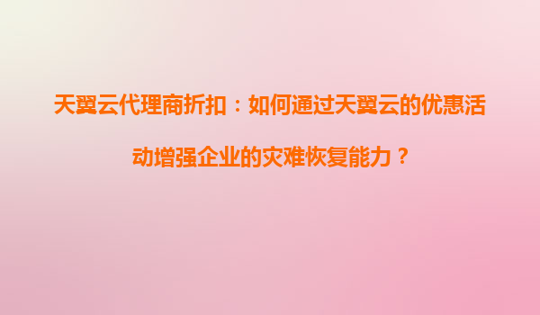 2025-09-18利用天翼云代理商折扣與優(yōu)惠活動(dòng)提升企業(yè)災(zāi)備能力 一、災(zāi)備能力對(duì)企業(yè)發(fā)展的核心價(jià)值 在數(shù)字化時(shí)代,業(yè)務(wù)連續(xù)性直接影響企業(yè)生存與發(fā)展。災(zāi)難恢復(fù)(DR)能力是企業(yè)應(yīng)對(duì)硬件故障、網(wǎng)絡(luò)攻擊或自然災(zāi)害等突發(fā)風(fēng)險(xiǎn)的關(guān)...