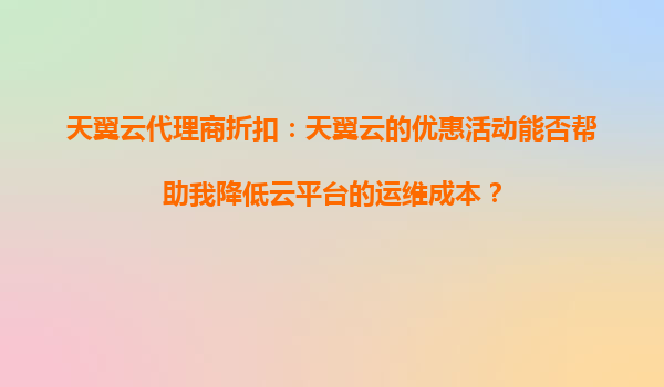 2025-09-18天翼云代理商折扣:天翼云的優(yōu)惠活動(dòng)能否幫助我降低云平臺(tái)的運(yùn)維成本? 一、引言 在數(shù)字化快速發(fā)展的當(dāng)下,企業(yè)上云已成為一種趨勢(shì)。然而,云平臺(tái)的運(yùn)維成本一直是企業(yè)關(guān)注的焦點(diǎn)。如何在不影響服...