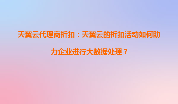 2025-09-18天翼云代理商折扣:天翼云的折扣活動(dòng)如何助力企業(yè)進(jìn)行大數(shù)據(jù)處理? 引言 在大數(shù)據(jù)時(shí)代,數(shù)據(jù)處理和分析已成為企業(yè)提升競(jìng)爭(zhēng)力的關(guān)鍵。然而,高昂的云計(jì)算成本和...