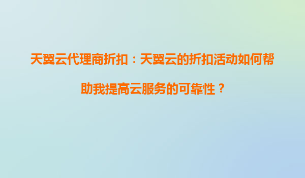 2025-09-18天翼云代理商折扣如何通過(guò)折扣活動(dòng)提升云服務(wù)可靠性 一、引言 在數(shù)字化時(shí)代,云計(jì)算已成為企業(yè)IT基礎(chǔ)設(shè)施的基石。天翼云作為中國(guó)電信旗下的云服務(wù)品牌,憑借其強(qiáng)大的網(wǎng)絡(luò)資源和技術(shù)實(shí)力,為企業(yè)提...