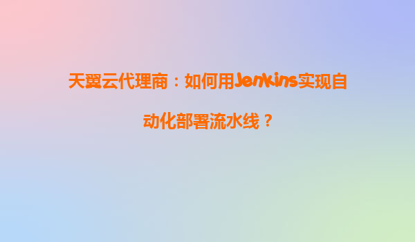 基于天翼云與Jenkins的自動化部署流水線實踐