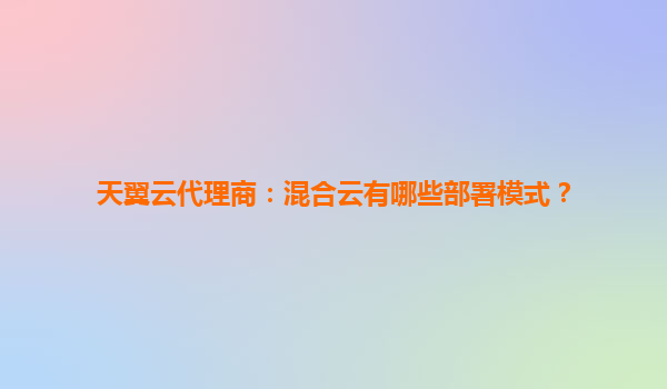混合云部署模式解析與天翼云的核心優(yōu)勢