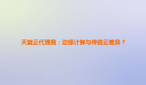 天翼云代理商視角:邊緣計算與傳統(tǒng)云計算的差異解析
