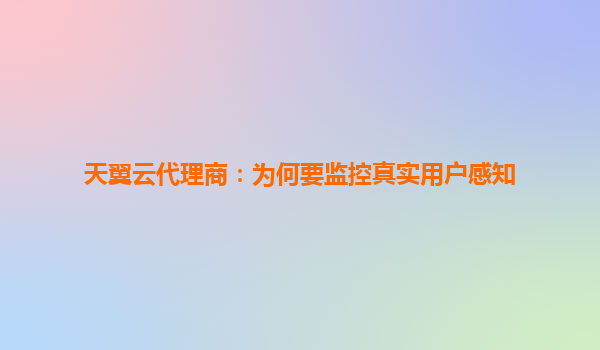真實用戶感知監控:天翼云代理商的核心競爭力