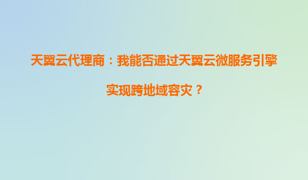 天翼云代理商:通過天翼云微服務(wù)引擎實現(xiàn)跨地域容災(zāi)的解決方案