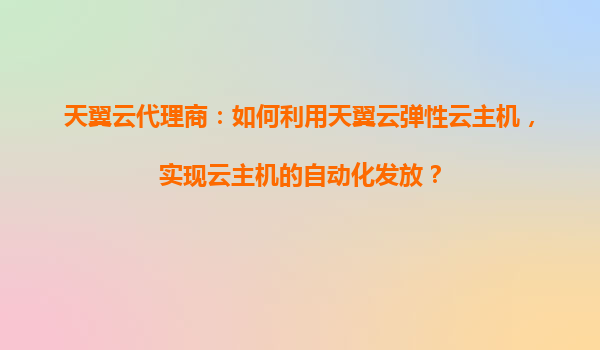 天翼云代理商:如何利用天翼云彈性云主機,實現(xiàn)云主機的自動化發(fā)放?