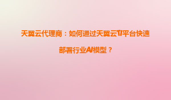 隨著人工智能技術在各行各業(yè)的深入應用,企業(yè)對高效、低成本的AI模型部署需求日益迫切。天翼云作為國內(nèi)領先的云服務提供商,依托其強大的技術能力和行業(yè)生態(tài),推出了天翼云TI(Tencent Intelligence)平臺,為企業(yè)和合作伙伴提供了從模型訓練到部署的一站式解決方案。而天翼云代理商作為連接技術與市場的橋梁,通過整合天翼云資源與本地化服務能力,正在加速推動行業(yè)AI模型的落地。以下是關于如何通過天翼云TI平臺快速部署行業(yè)AI模型的詳細解析。