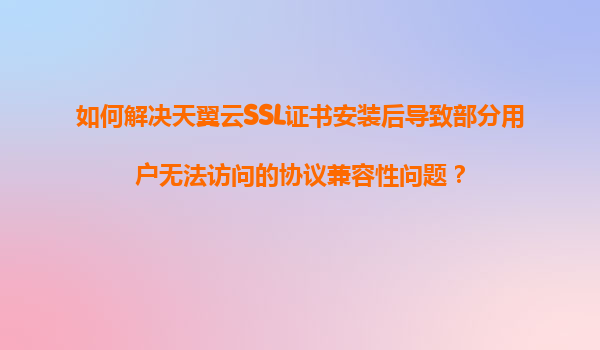 2025-11-05如何解決天翼云SSL證書安裝后導(dǎo)致部分用戶無法訪問的協(xié)議兼容性問題? 問題背景與現(xiàn)象分析 在天翼云環(huán)境中部署SSL證書后,部分用戶可能因?yàn)g覽器版本、設(shè)備系統(tǒng)或網(wǎng)絡(luò)環(huán)...