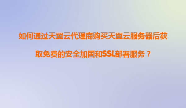 2025-11-04如何通過(guò)天翼云代理商購(gòu)買天翼云服務(wù)器并獲取免費(fèi)安全加固與SSL部署服務(wù) 一、天翼云服務(wù)器的核心優(yōu)勢(shì) 在眾多云服務(wù)商中,天翼云憑借以下差異化優(yōu)勢(shì)脫穎而出: 1.央企背景與高可靠性 中國(guó)電信作為三大運(yùn)營(yíng)商之一,...