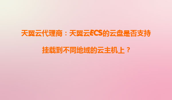 2025-11-01天翼云代理商解析:天翼云ECS云盤能否跨地域掛載至云主機(jī)? 一、天翼云ECS云盤跨地域掛載的核心問題 天翼云作為中國電信旗下的云計(jì)算服務(wù)商,其彈性計(jì)算服務(wù)(E...