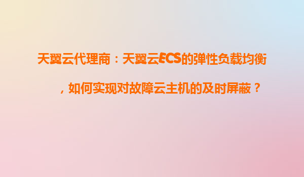 2025-11-01天翼云代理商:天翼云ECS彈性負(fù)載均衡如何實(shí)現(xiàn)對故障云主機(jī)的及時屏蔽 引言 隨著云計(jì)算技術(shù)的快速發(fā)展,企業(yè)對云服務(wù)的可用性和穩(wěn)定性提出了更高的要求。天翼云作為中國電信旗下的云計(jì)算服務(wù)品牌,憑借其強(qiáng)...