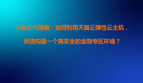 2025-10-31天翼云代理商:如何利用天翼云彈性云主機(jī),快速構(gòu)建高安全金融專區(qū)環(huán)境 引言 在數(shù)字化轉(zhuǎn)型浪潮中,金融行業(yè)對(duì)數(shù)據(jù)安全、系統(tǒng)穩(wěn)定性和合規(guī)性的要求日益嚴(yán)苛。天翼云作為中國電信旗下的云...
