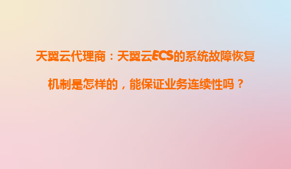 4008-020-360 天翼云代理商:天翼云ECS的系統(tǒng)故障恢復(fù)機(jī)制解析與業(yè)務(wù)連續(xù)性保障 一、天翼云ECS的故障恢復(fù)機(jī)制設(shè)計(jì) 天翼云作為中國電信旗下云服務(wù)品牌,其ECS(彈性計(jì)算服務(wù))采用多層次容災(zāi)架構(gòu)保障系統(tǒng)穩(wěn)定性: 硬件級(jí)冗余設(shè)...