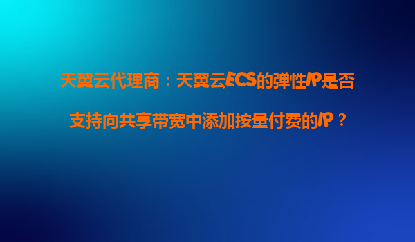 2025-10-31天翼云ECS彈性IP與共享帶寬的靈活配置解析 一、天翼云彈性IP與共享帶寬的核心優(yōu)勢(shì) 天翼云作為中國電信旗下的云計(jì)算服務(wù)商,其彈性IP和共享帶寬服務(wù)在資源調(diào)配效率和成本控制方面表現(xiàn)突出: 雙計(jì)費(fèi)模...