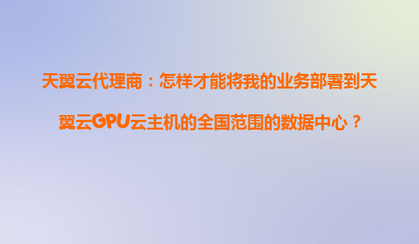 2025-10-26天翼云代理商:如何將業(yè)務(wù)部署到天翼云GPU云主機(jī)的全國(guó)范圍數(shù)據(jù)中心 一、天翼云的獨(dú)特優(yōu)勢(shì) 作為中國(guó)電信旗下的云計(jì)算服務(wù)品牌,天翼云憑借其強(qiáng)大的基礎(chǔ)設(shè)施和資源優(yōu)勢(shì),為企業(yè)提供了高性能、高可...