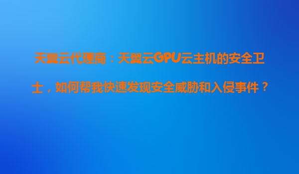 2025-10-26天翼云代理商:天翼云GPU云主機(jī)的安全衛(wèi)士,如何助力快速發(fā)現(xiàn)安全威脅和入侵事件 引言:數(shù)字化時(shí)代的安全挑戰(zhàn) 隨著企業(yè)數(shù)字化轉(zhuǎn)型加速,云計(jì)算和GPU算力需求激...