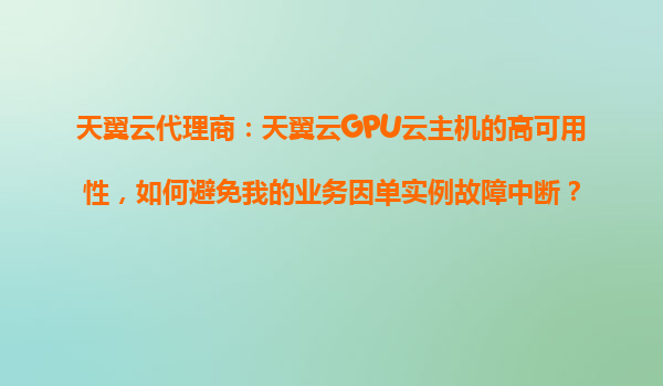 2025-10-26天翼云代理商:天翼云GPU云主機(jī)的高可用性,如何避免業(yè)務(wù)因單實(shí)例故障中斷? 在當(dāng)今數(shù)字化時(shí)代,企業(yè)對(duì)云計(jì)算的需求日益增長(zhǎng),尤其是高性能計(jì)算場(chǎng)景(如AI訓(xùn)練、圖形渲染等)對(duì)GPU云主機(jī)的依賴尤為突出。然而,...