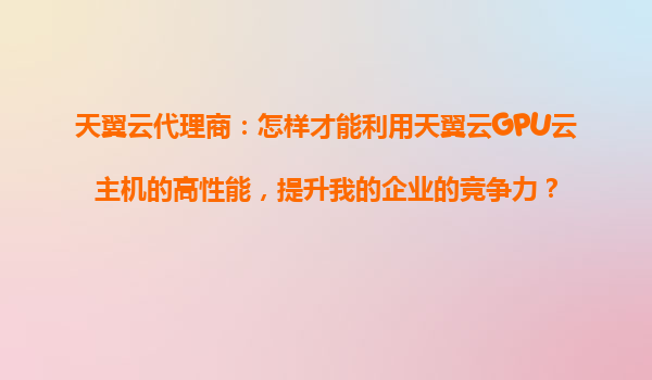 2025-10-26天翼云代理商:利用天翼云GPU云主機(jī)提升企業(yè)競(jìng)爭(zhēng)力的關(guān)鍵策略 一、引言 在數(shù)字化轉(zhuǎn)型的浪潮中,企業(yè)對(duì)高性能計(jì)算資源的需求日益增長(zhǎng)。天翼云作為中國(guó)電信旗下的云計(jì)算服務(wù)品牌,憑借其強(qiáng)大的GPU云主機(jī)能力...