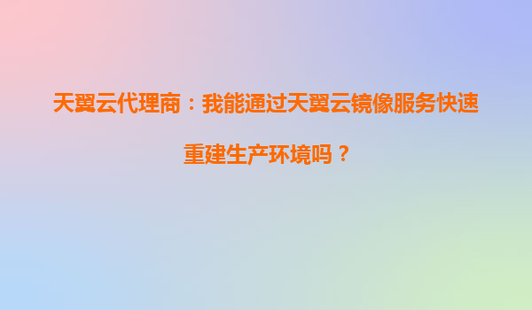 2025-10-10天翼云代理商:我能通過天翼云鏡像服務(wù)快速重建生產(chǎn)環(huán)境嗎? 一、天翼云鏡像服務(wù)的核心價值 在數(shù)字化轉(zhuǎn)型浪潮中,企業(yè)常面臨生產(chǎn)環(huán)境快速部署、災(zāi)備恢復(fù)等需求。天翼云鏡像服務(wù)通過將系...