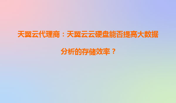 2025-10-06天翼云代理商:天翼云云硬盤如何提升大數(shù)據(jù)分析的存儲效率? 引言 在數(shù)字化時(shí)代,大數(shù)據(jù)分析已成為企業(yè)決策和業(yè)務(wù)優(yōu)化的核心驅(qū)動力。然而,高效的大數(shù)據(jù)分析離...