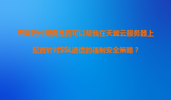 2025-11-07天翼云代理商是否可以幫助配置SSL通信的強(qiáng)制安全策略?——解析天翼云的安全優(yōu)勢(shì) 一、天翼云代理商的服務(wù)能力 天翼云作為中國(guó)電信旗下的云計(jì)算品牌,擁有完善的...