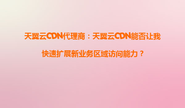 2025-10-01天翼云CDN代理商:天翼云CDN能否讓我快速擴(kuò)展新業(yè)務(wù)區(qū)域訪問(wèn)能力? 引言 在數(shù)字化時(shí)代,企業(yè)業(yè)務(wù)的快速擴(kuò)展網(wǎng)絡(luò)訪問(wèn)能力成為競(jìng)爭(zhēng)的關(guān)鍵。無(wú)論是電商平臺(tái)、在線...