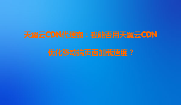 2025-09-30天翼云CDN代理商:我能否用天翼云CDN優(yōu)化移動(dòng)端頁(yè)面加載速度? 移動(dòng)端頁(yè)面加載速度的重要性 在移動(dòng)互聯(lián)網(wǎng)時(shí)代,用戶對(duì)頁(yè)面加載速度的要求越來(lái)越高。據(jù)統(tǒng)計(jì),超過(guò)50%的用戶會(huì)在頁(yè)面加載時(shí)...