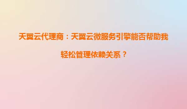 2025-09-24天翼云代理商:天翼云微服務(wù)引擎如何輕松管理依賴關(guān)系 一、微服務(wù)架構(gòu)的依賴管理挑戰(zhàn) 在數(shù)字化轉(zhuǎn)型浪潮中,微服務(wù)架構(gòu)因其靈活性、可擴(kuò)展性成為企業(yè)首選。然而,隨著服務(wù)數(shù)量增長,服務(wù)...